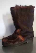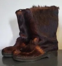 Paio di doposci in cavallino rosso (sceval francese indicazione presente sulla scatola) foderato in pelo, con suola Pirelli. Scatola originale.